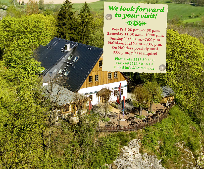 When you walk up the 375-metre-high KOITSCHE, you can already imagine the fantastic panoramic view. Only 10 minutes by car from the city of Zittau you can enjoy one of the most beautiful vantage points in our region, we call it »Hospitality with a horizon«.